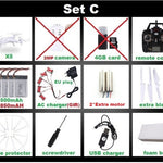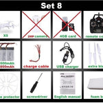 Package Includes: Remote Controller,Batteries,Charger,Operating Instructions,USB Cable,Camera