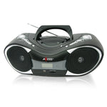 The Axess Portable Boombox is a top loading MP3/CD player boombox with a built in AM/FM radio tuner. Play your favorite music and audio files from the MP3/CD player USB Port, or SD/MMC Card Slot.The telescopic FM antenna provides clearer reception, and the high output stereo speakers fill your home with dynamic audio.Plus, the attractive exterior adds a stylish touch. And the easy-to-read LCD panel lets you locate the CD control or radio stations quickly.SPECIFICATIONS: AM/FM Stereo Radio SD/MMC Card Slot USB 2.0 Full Speed 3.5mm Auxiliary Jack Output Power: 2.5W x2 Total 5W AC/DC Power AC 110-120V Direct ConnectPackage includes: Axess Portable CD/MP3 BoomboxWARRANTY: 1 Year Direct Manufacturer Warranty