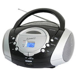 Enjoy your music anywhere! Plug in your MP3 files via 3.5mm input or drop in your CD's for excellent sound quality. Dynamic High Performance Speakers Top Loading CD Player Plays MP3/CD, CD-R, CD-RW Built-in USB Input Allows You to Play Media Devices Such as an MP3 Player 3.5mm Auxiliary Input for Most External Audio Devices Built-in AM/FM Radio Analog Tuning Radio LCD Display Telescopic Antenna Rotary Volume/Tuning Control Repeat One/All Functions Bass Boost System AC/DC Operation Frequency Range: AM: 530-1600KHz FM: 88-108MHz Frequency Response: 100Hz-16KHz Power Output: 1.2W x 2 Power Source: AC: 110V/220V DC: UM2 1.5V x 6 Accessories Included: Remote Control, AC Adapter & Users Manual